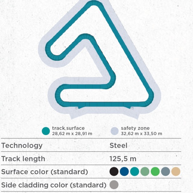 Kan leveres i flere standard farger slik at pumptracken integreres naturlig i park, skolegård eller byrom – eller fremstår som et markant og attraktivt aktivitetspunkt.