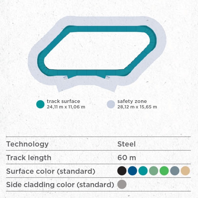 Parallellogramformen gir et mer dynamisk kjøremønster enn enklere ovale løsninger, samtidig som banen er oversiktlig og trygg i bruk.